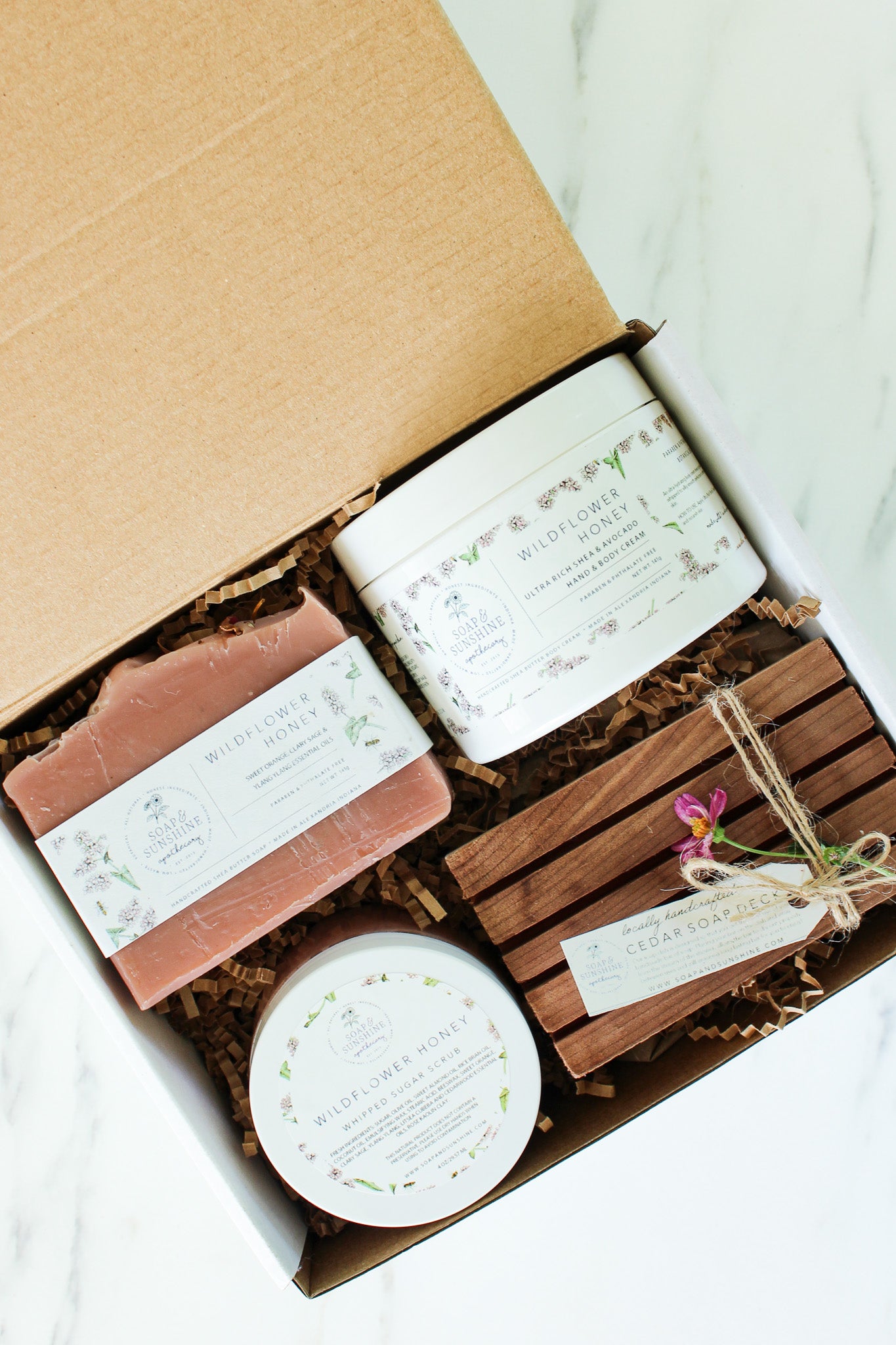 For custom gift boxes or large orders for your business or Christmas party, please email us at info@soapandsunshine.com. We'd love to help!